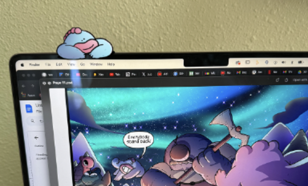 And here is the final product! He fits on most laptops, iPads, but also comes with his own custom stand so you can put him anywhere!